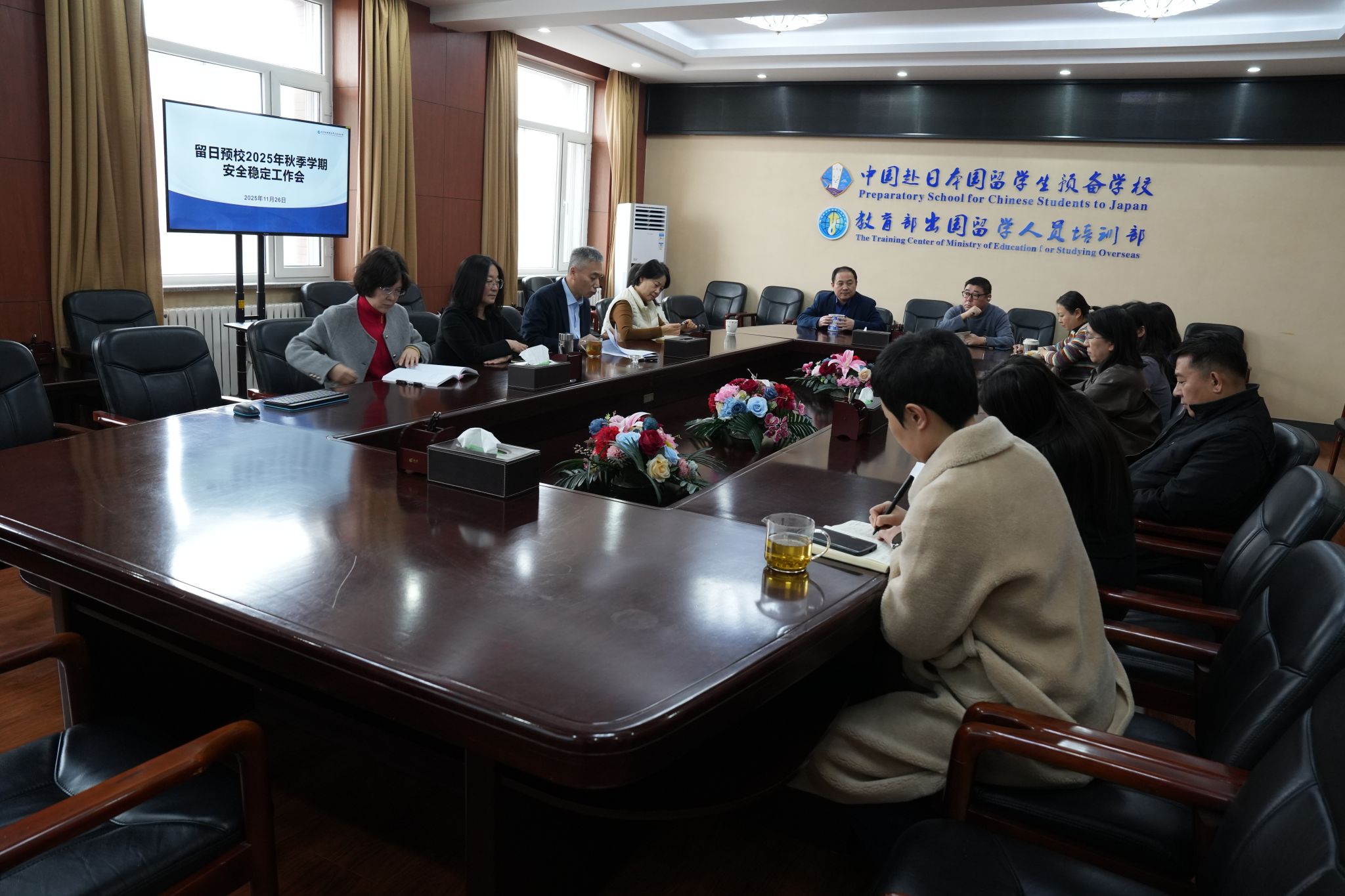 为做好近期的安全稳定工作,营造和谐、有序、安定的教育教学环境,2025年11月26日,留日预校(培训部)组织召开2025年秋季学期安全稳定工作专题会议。日语教学团队及行政团队参加会议。