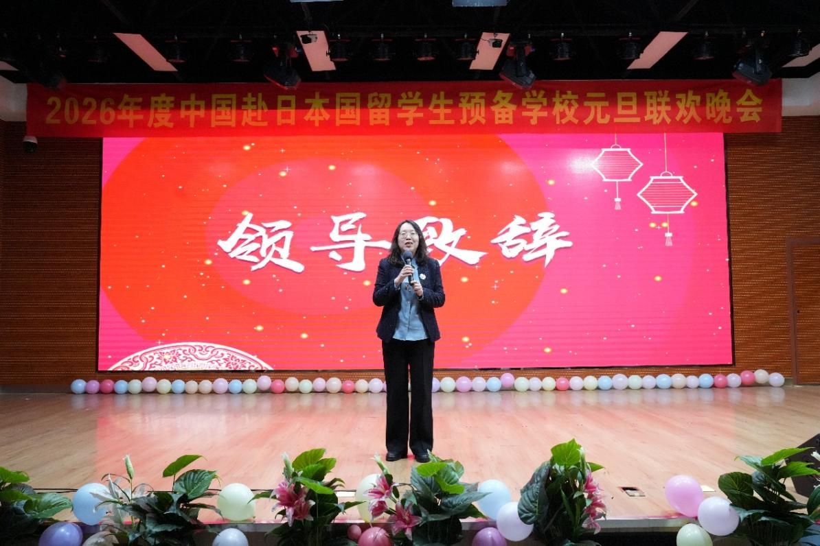 日迈月征,朝暮轮转。欢愉胜意,万事可期。2025年12月31日下午,中国赴日本国留学生预备学校一楼多功能厅内华灯璀璨、笑语盈堂,以“逐光筑梦,共赴新程”为主题的2026年元旦联欢会在此隆重举行。留日预校常务副校长高瑛、副校长辛红、副校长刘桂萍与全体师生欢聚一堂,于欢声笑语中回顾奋斗历程,在精彩纷呈间展望崭新蓝图,共同迎接2026年的到来。