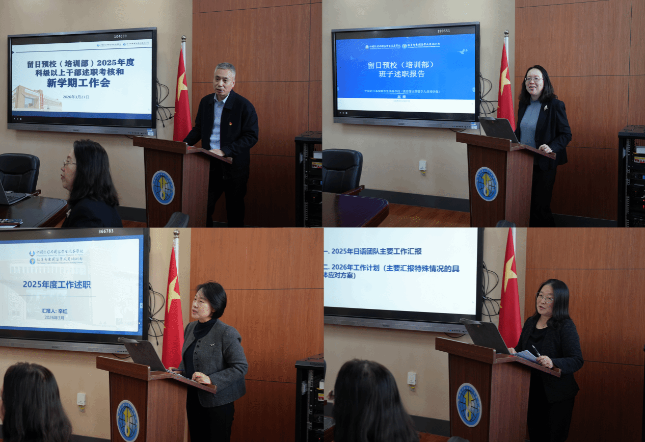 会上,直属党支部书记邹云龙,常务副校长高瑛,副校长辛红、副校长刘桂萍依次进行现场述职。邹云龙重点介绍了推行“五学联动”理论学习机制、推动党建与业务融合、加强党员教育管理以及全面从严治党等方面取得的新进展。高瑛结合担任留日预校常务副校长和外国语学院院长的双重职责,介绍了在学科建设、科研转型、人才培养以及统筹两院资源推动融合发展等方面取得的工作成果。辛红围绕行政管理工作,介绍了在优化服务机制、强化内外协同、规范财务管理、创新招生宣传以及推进校友体系建设等方面的工作进展。刘桂萍围绕日语教学工作,介绍了公派项目与自费项目的教学管理、学术活动组织以及面对新形势制定的教学调整预案等情况。科级干部以书面形式述职。